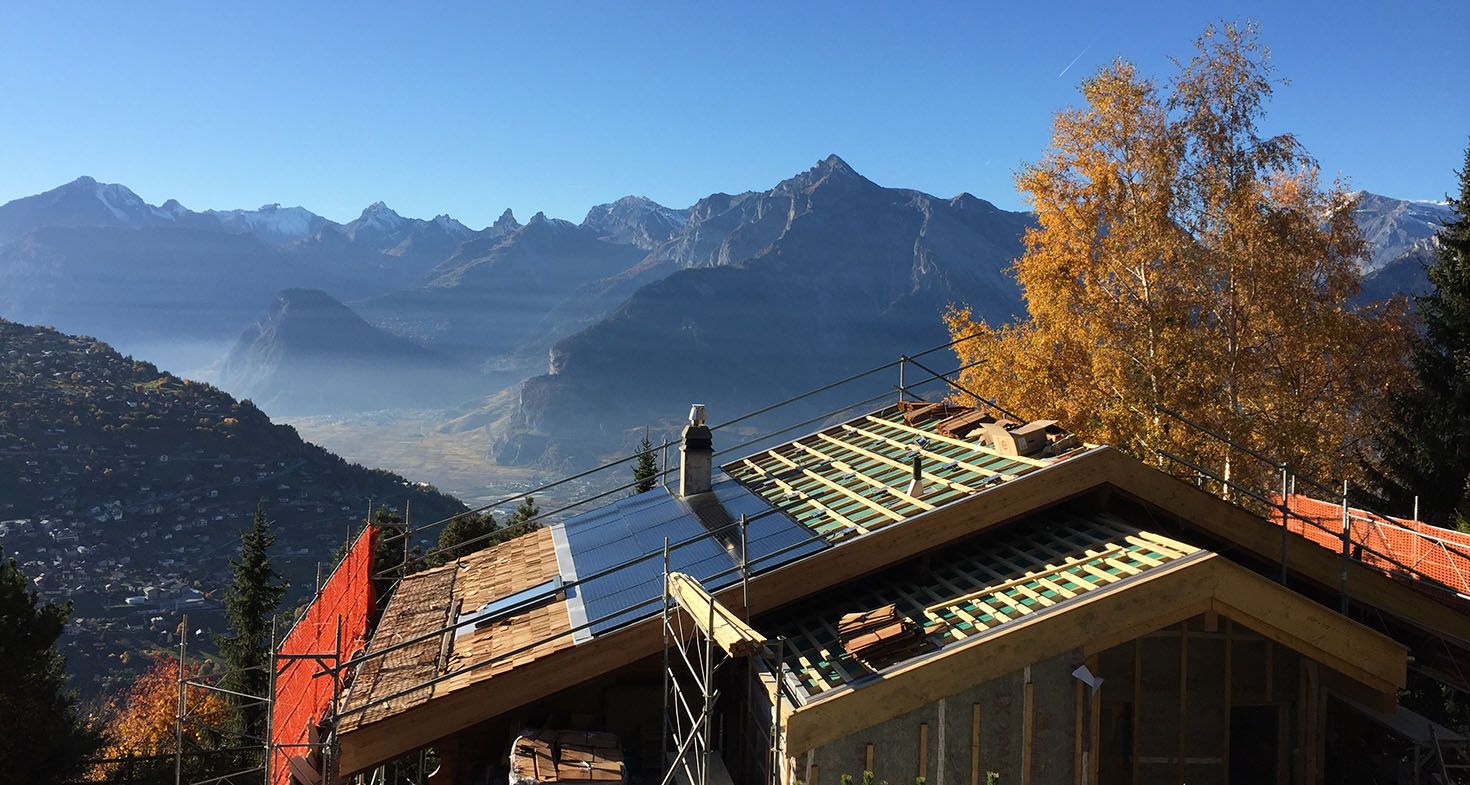Voici certains de nos projets dont une maison démo que nous avons construit pour mieux vous servir. Avec le système MSK, vous optez non seulement pour un système de couverture étanche intégrant des panneaux photovoltaïques de dernière génération, mais aussi pour une solution très esthétique. Les rails en aluminium anodisé noir et les nouveaux panneaux photovoltaïques 'Black Label' à la surface en verre mat gris-noir, donnent un aspect uniforme très esthétique à votre toit. La problématique de la mise à l'enquête et du permis de construire s'en trouve donc allégée, puisque l'intégration au paysage est parfaitement harmonieuse.